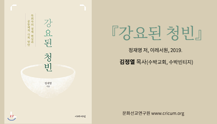 불치병보다 무서운 게 지병이다. 지병과 함께 사는데 익숙해져서 병원에 잘 가지 않기 때문이다. ‘강요된 청빈’은 불치병이 아니고 지병이다. 이 책을 통해서 지병을 고치기 위해 병원에 가는 교회들이 많아지길 바라본다.