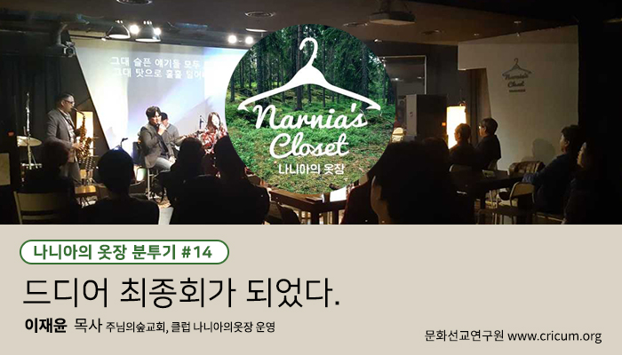 드디어 최종회가 되었다. 어쨌든 이 글을 쓰는 시점에 우리는 5년을 꽉 채우고 나니아의옷장x주님의숲교회 형태로 생존하고 있다. 너무 많은 일들이 있었고, 아직도 복잡한 생각들이 혼재하기에... 일단... 떠오르는 단상들을 적어보려 한다. 지난 5년간의 실험과 생존, 그리고 행복했던 순간들의 결과보고서이다.