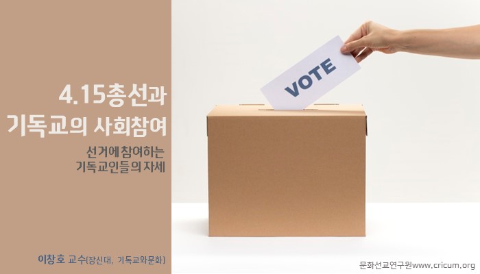 총선을 앞둔 한국 교회의 신자들은 총선에서 공적 후보자를 선출하는 일을 통해 공적으로 책임적인 삶을 구현해야 할 것이다. 공적 책임을 적극적으로 수행하되, 적절하게 또 공동체에 유익이 되는 방향성을 견지하며 그렇게 해야 할 것이다. 하나님께서 한국 교회와 신자들이 이번 총선에서 바르고 건설적인 실천을 할 수 있도록 굳세게 붙잡아 주시고 선하게 인도해 주시길 기도한다.