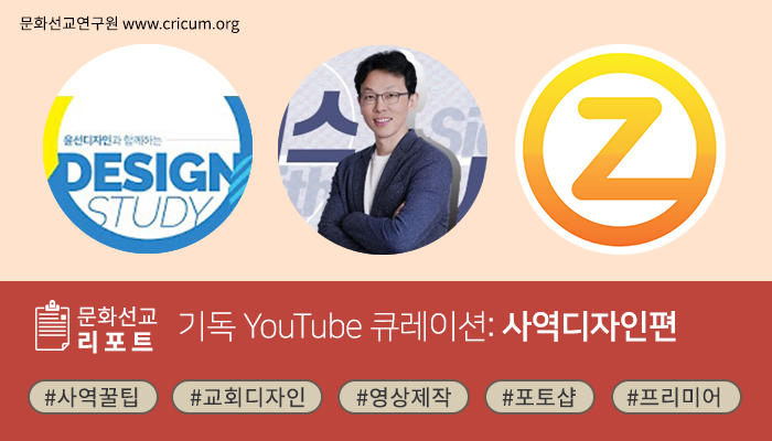 ‘윤선디자인’ 대표 정윤선 디자이너의 강의 채널이다.. 디자인을 막 시작하는 초보들을 위한 강의부터 중급·고급 그리고 캘리그래피 등 다양한 디자인 강의들이 있다. 그런데 고마운 것은, 사역자들을 위한 디자인 나눔과 포토샵 강의 채널이 따로 있다는 점. 디자인을 시작하기 전 먼저 구비해야 하는 프로그램이나 유용한 무료 사이트도 가르쳐주고, 개척교회를 위한 절기 현수막 나눔 이벤트도 한다니 교회 디자인을 하는 사람들은 잊지 말고 ‘구독’을 눌러놓을 것! 믿고 볼 수 있는 디자인 강의 채널로 추천한다.