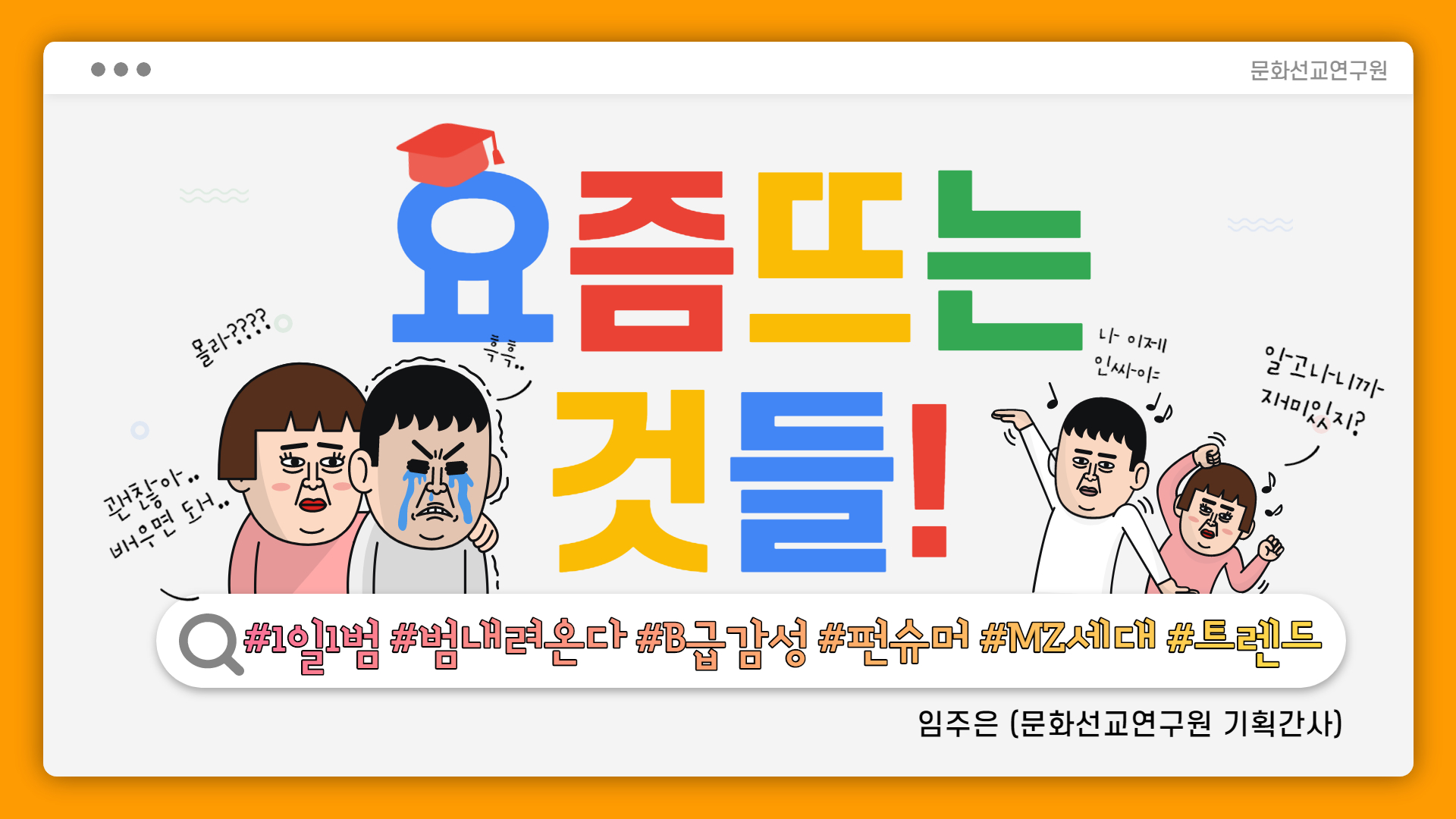 지난 편이 ‘신조어(-세권)’편이었다면, 이번 편은 요즘 핫한 트렌드와 그 현상에 대해 살펴보는 시간이다. 이달의 트렌드 주제는 ‘1일 1범’이다.