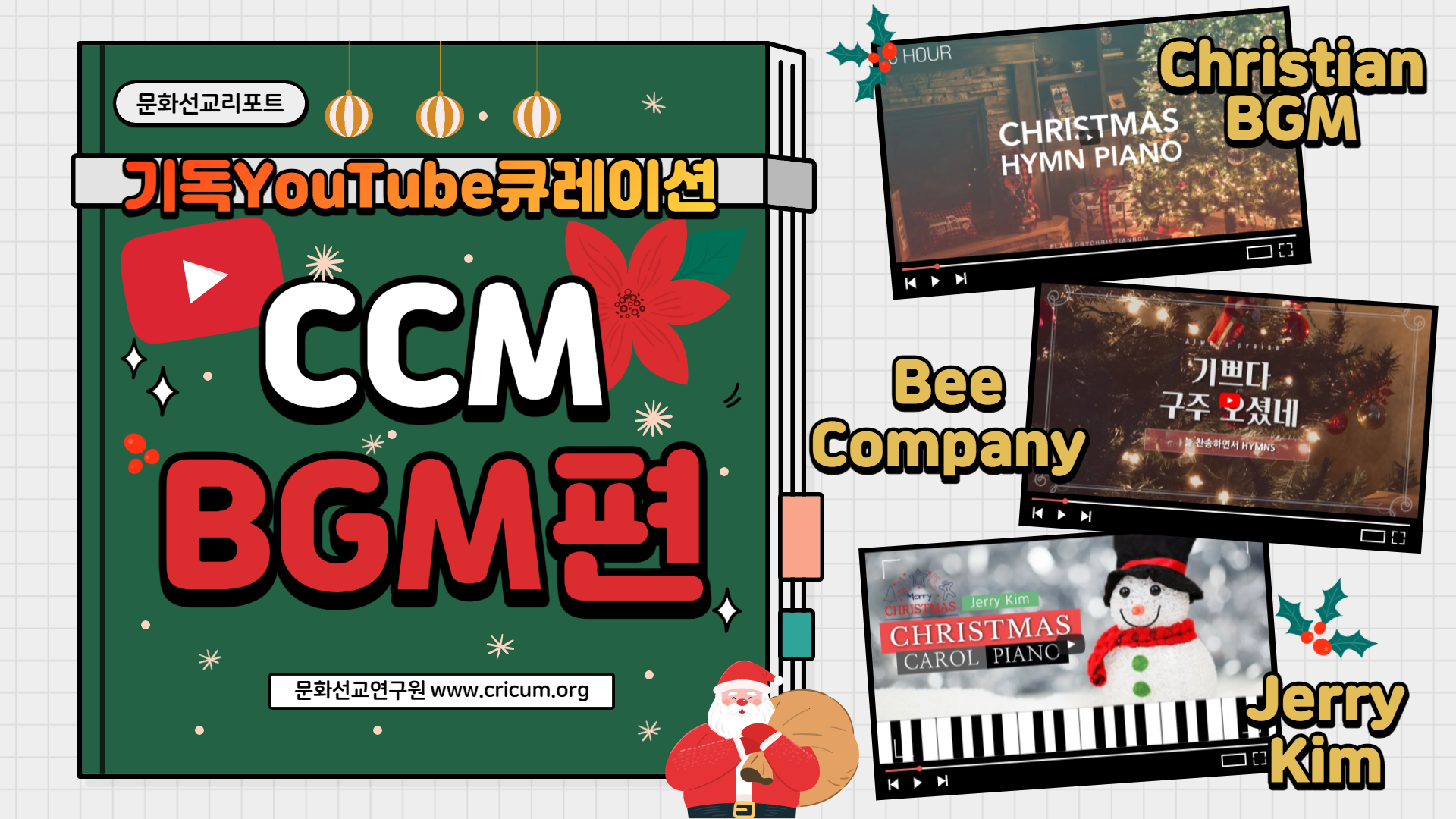 연말이 되면 길거리에 울려퍼지는 캐롤송을 통해 크리스마스 분위기를 더욱 만끽할 수 있게 된다. 하지만 코로나19 바이러스의 확산으로 모임 및 행사에 참석할 수도, 길거리에서 분위기를 만끽할 수도 없는 이번 연말, 어떻게 보내면 좋을까? 실내에서 따뜻한 불빛 아래 분위기 있는 성탄곡들을 들으며 어두운 이 땅에 빛으로 오신 예수님을 떠올려보면 어떨까? 한층 더 은혜로운 연말이 될 수 있으리라 믿는다. 그런 의미에서, 기독 유튜브들 중에서 가장 많은 구독자를 보유하고 있는 채널인, ‘CCM BGM’ 채널들을 소개해본다.