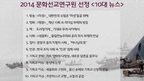 2014년을 “위기 속 사회를 지탱하는 진정한 ‘가치’에 대한 물음을 던진 한 해”라 표현한 문선연 측은 올 한 해 한국 사회의 정치, 문화, 종교, 교계를 돌아보며 10가지 이슈를 선정했으며 그중 세월호 침몰 사건과 프란치스코 교황 방한이 주요 담론을 형성했다고 지적했다.