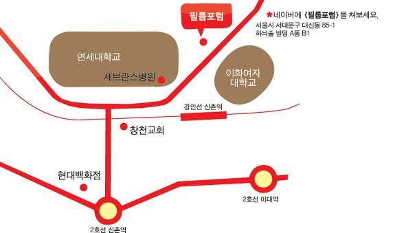 주소 : 서울특별시 서대문구 대신동 85-1 하늬솔빌딩 A동 B1 필름포럼 (우 120-160)
